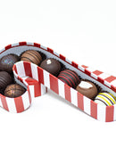 Select one of our adorable candy cane boxes to complete your holiday shopping! Choose between our creamy truffles or our classic tradition chocolates.