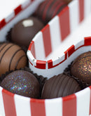 Select one of our adorable candy cane boxes to complete your holiday shopping! Choose between our creamy truffles or our classic tradition chocolates.