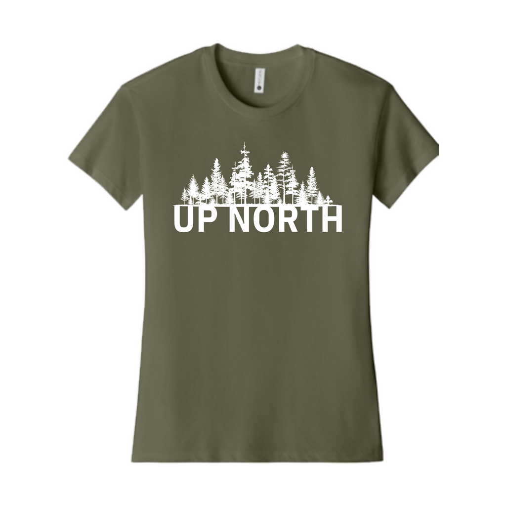 Bring the magic of the Northwoods into your everyday wardrobe with the Up North Trees Tee. Designed for comfort and style, this women’s tee is a tribute to the natural beauty and peaceful moments found Up North.