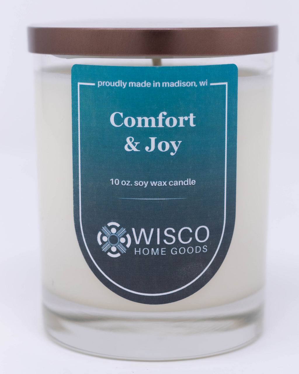 Embrace the spirit of the season with Comfort & Joy. This candle combines the crisp, invigorating scent of eucalyptus and fresh fir needles with the warmth of cinnamon and spicy clove. A deep, earthy wood base grounds this ...
