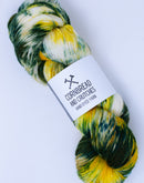 Hand dyed yarn. Packer Backer yellow, green and white fingering weight yarn. These would make an amazing "say something" pair of socks!One hank is sufficient for a single pair of...